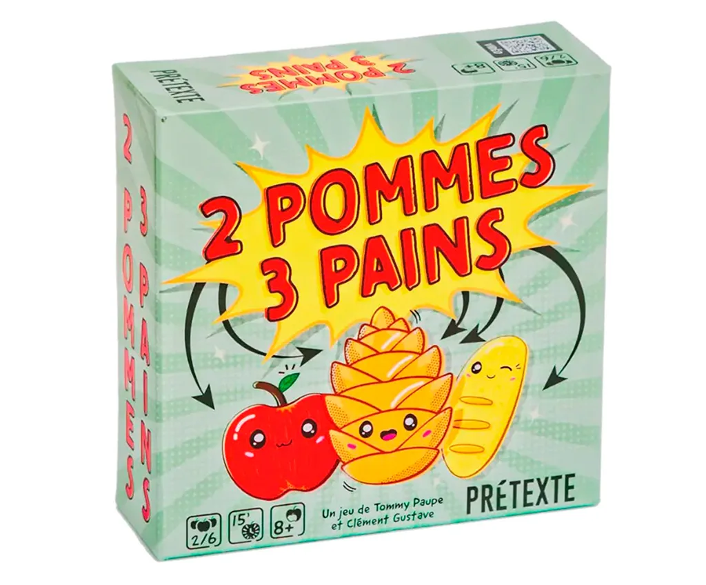 Chaque joueur à son tour retourne une carte et la pose sur une des 3 piles. Il a alors 5 secondes pour annoncer une valeur de pommes et de pains. Les illustrations représentent des pommes, des pains et des pommes de pin. C’est toute la subtilité du jeu car chaque pomme de pin compte pour une pomme et 2 pains!