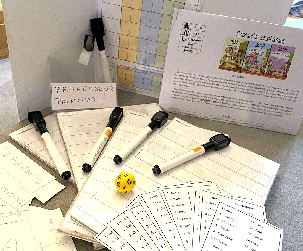 Dans ce jeu, les joueurs incarnent des professeurs en conseil de classe et commentent l’année d’un élève. Chaque commentaire doit inclure un mot imposé et refléter (plus ou moins fidèlement) la note obtenue. Les autres devinent la note : plus l’écart est grand, plus les points s’accumulent. Le moins de points gagne.
