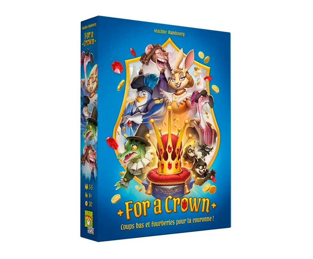 For a Crown est un jeu stratégique à la mécanique originale de « One-deck building », mêlant bluff, alliance et opportunisme ! Issus de familles nobles, vous êtes prêts à tout pour accéder au trône… sauf que la compétition entre les prétendants est féroce. Arriverez-vous à vos fins pour vous assurer la victoire ?
