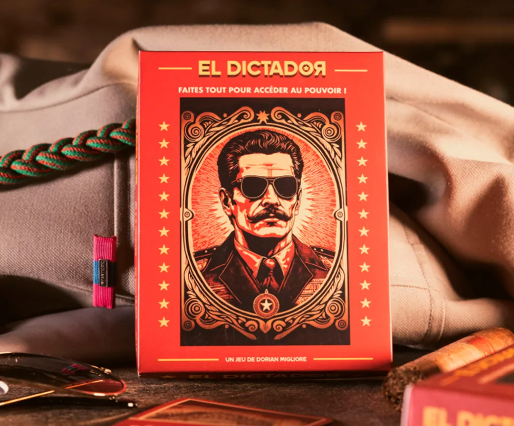 FAITES TOUT POUR ARRIVER AU POUVOIR ! El Dictador est un jeu de société audacieux mêlant humour noir et provocation. Inspiré par le célèbre 1000 Bornes, il vous met au défi d’utiliser ruse, stratégie et alliances temporaires pour devenir le maître incontesté du pouvoir. Chaque partie est un terrain de coups bas, intrigues et retournements imprévisibles. Préparez-vous à des parties endiablées où seul le plus malin triomphe et impose sa dictature.