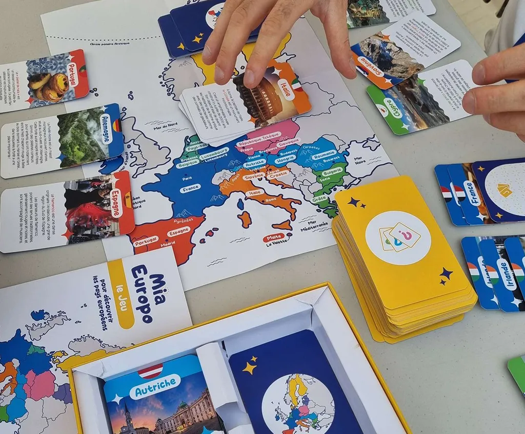 L’Europe à portée de jeu ! Découvrez un jeu familial accessible dès 8 ans qui invite petits et grands à voyager à travers le continent tout en s’amusant. Éducatif et convivial, il réunit toutes les générations autour de la table et permet d’apprendre en jouant. Entre découvertes culturelles, défis visuels et moments partagés, chaque partie devient une expérience unique et enrichissante. Préparez-vous à explorer l’Europe comme jamais, dans la bonne humeur et la complicité familiale.
