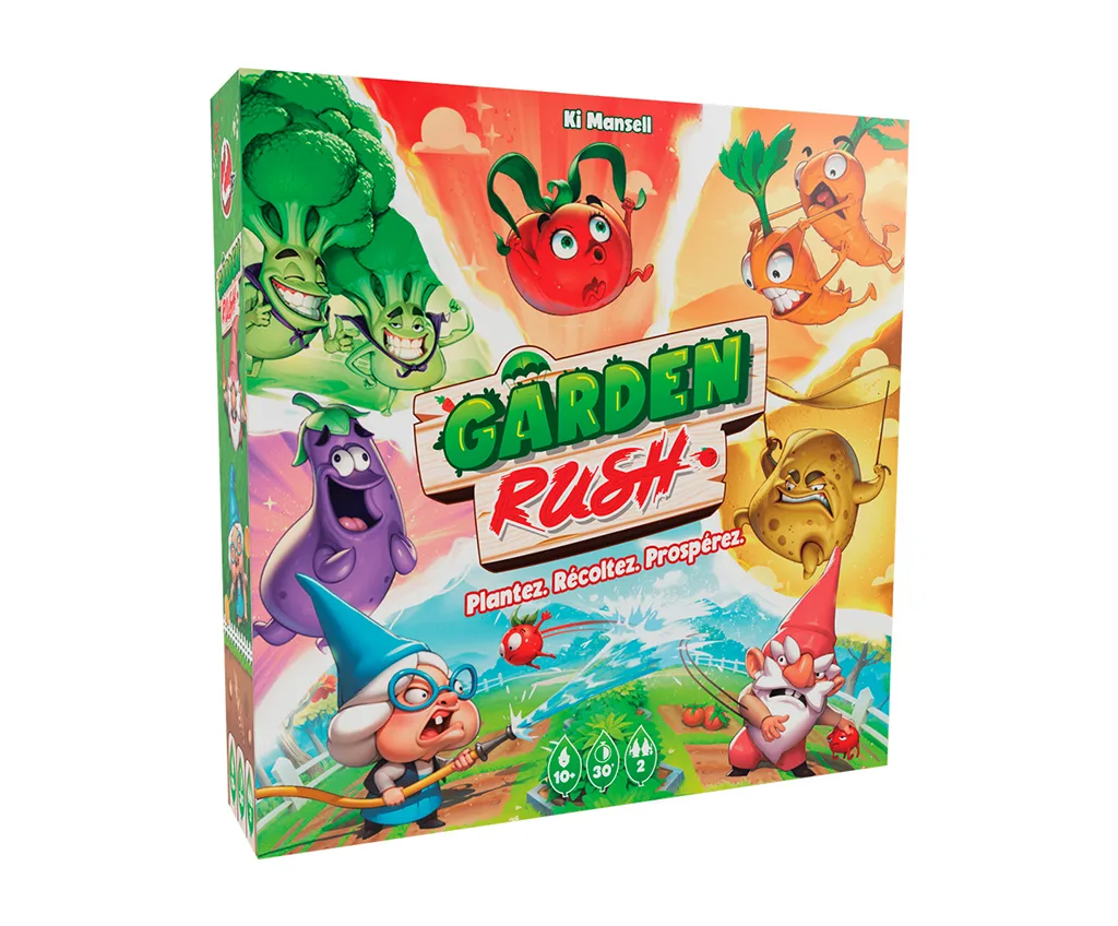 Dans ce duel tactique de jardinage, les joueurs s’affrontent pour faire pousser des légumes dans leur potager et remplir leur panier avant leur voisin. Chaque légume doit être planté selon une disposition bien spécifique pour optimiser la récolte, mais la course est loin d’être tranquille !