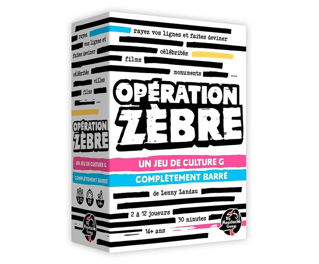 Dans le jeu Opération Zèbre, chaque joueur devient un agent chargé de transmettre un document classifié… Sans en révéler trop ! Votre objectif est simple : faire deviner une carte à votre équipe en barrant un maximum de lignes. Mais attention, plus vous laissez d’informations visibles, plus la suspicion monte.