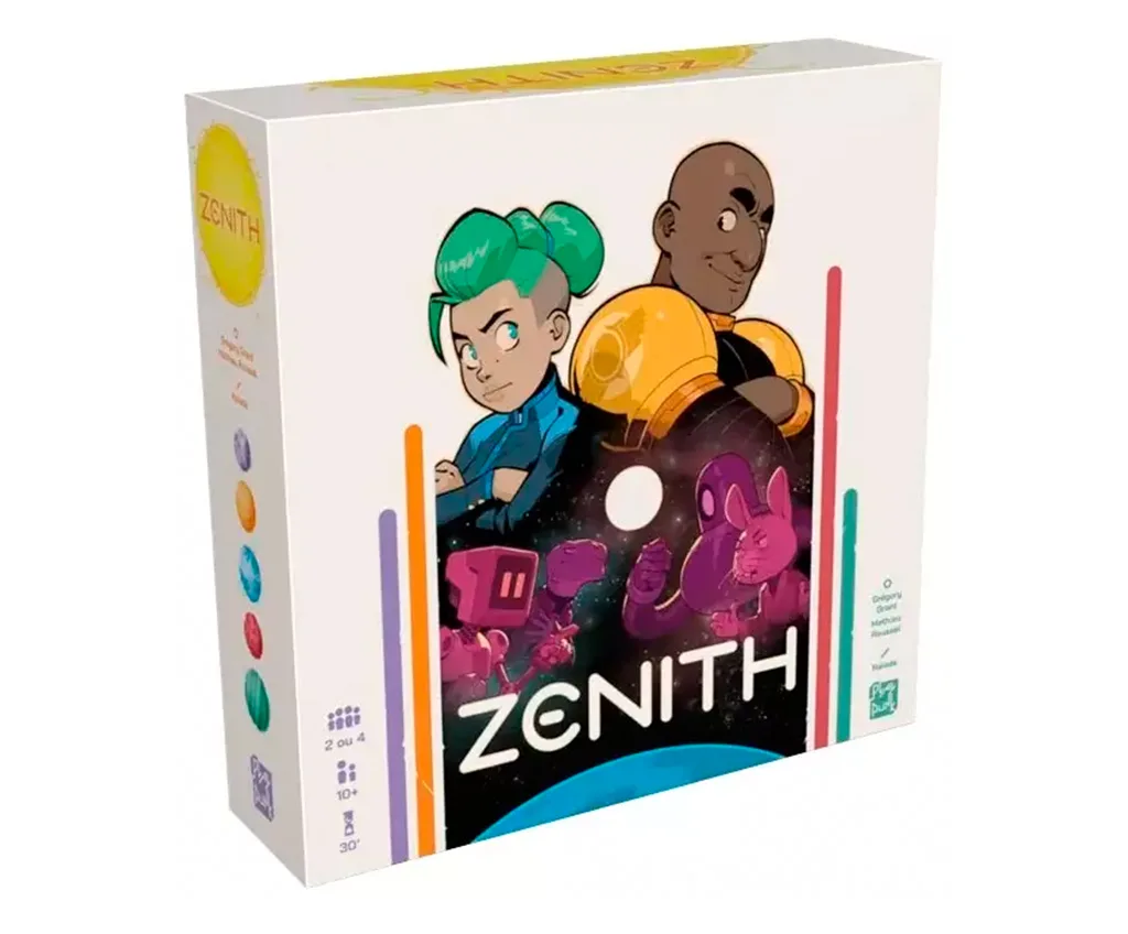 Zénith est un jeu tactique conçu pour 2 joueurs ou pour 4 joueurs en équipes. Dans cet affrontement stratégique, chaque camp se lance dans une lutte pour s’imposer sur les 5 planètes du système solaire. Pouvoir, diplomatie et développement technologique : toutes les stratégies sont permises pour décrocher la victoire.